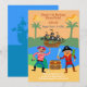 Appelle tous les copains pour une aventure de fête de pirates. Célébrez l’anniversaire de votre petit pirate avec cette invitation colorée et moderne, mettant en vedette le capitaine de pirate et son compagnon. Ils sont arrivés sur une île et ont trouvé un trésor. Bientôt ils fêteront dans leur bateau de pirate voiles noires ! L'arrière - plan présente une silhouette de navire dans les tons bleus. Cette carte est parfaite pour l'anniversaire d'un garçon sur le thème du pirate, marcher l'anniversaire de pirate de la planche, parler comme un jour de pirate, et plus encore. Il est facile de personnaliser cette invitation avec vos propres détails.