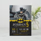 Célébrez dans un style héroïque avec cette invitation d'anniversaire Batman heureux! Avec Batman en action et sa typographie audacieuse inspirée du style de tableau noir, ce design dynamique donne le ton parfait pour une fête inoubliable. Entièrement personnalisable avec les détails de votre événement, il est idéal pour les fans du plus grand héros de Gotham.