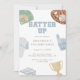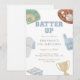 Invitation Batter up Preppy Blue Baseball Bow 4th Birthday