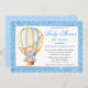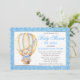 Aquarelle Blue Hot Air Balloon Teddy Bear avec Blue Bow Gold Parties scintillant Baby shower par Mail Invitation. Silver Grey et Blue Text.