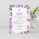 Célébrez le baptême religieux de votre enfant avec cette élégante invitation aux fleurs violettes avec de jolies fleurs violettes et une croix. Idéal pour une fête chrétienne catholique. Disponible en espagnol Celebra el Bautismo religioso de tu hijo con esta elegante Invitación con Flores Moradas, que presenta lindas flores moradas y una cruz. Idéal para una fiesta de Bautismo Católico.