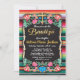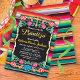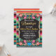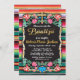 Colorée mexicaine Fiesta Baptism / bautizo et Invitation de fête avec arrière - plan tapis aztèque. Il présente des fleurs d'inspiration picado au papel brillant, des accents de parties scintillant faux or et un arrière - plan mexicain aztèque de tapis.