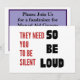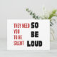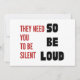 They need you to be silent so be loud invitation, great for fundraisers. This is a very basic invitation template on the back side of the design. Authoritarians thrive on silence, on complacence, on complicity. There are more of us than there are of them so let's be loud. Design description front: On the left, the words, They need you to be silent in restrained red font. On the right, the words, so be loud in a larger bolder black font. Design description back: A rectangular box with customizable colors. As shown, it has a dark purple border and a light purple fill box, indicating that mutual aid should be bipartisan. There are 7 lines of text. The first three lines are for describing the event. The next two lines are for date and time. The final two lines are for telling people to check a website for more information.