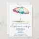 Invitation Beach, Blue, Red, Teal Umbrella, Bridal Shower