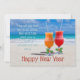 Cheers to the new year. Beach drinks Happy New Year cards. Skip the Christmas cards and send a message for a happy new year. Sample wording in two places say, "May all the best be yet to come. (Name / names) wish you a healthy, prosperous, and very ... Happy New Year."