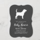Inclure le grand frère ou la soeur en fourrure bébé dans la célébration avec cet adorable baby shower de chien Beagle ! Parfait pour un amoureux du chiot avec un bébé en route. La Beagle est à côté d'une adorable calèche vintage. L'arrière - plan gris damier est parfait pour une douche neutre ou co-ed pour les hommes !
