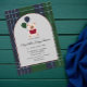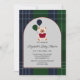 Navy blue and dark green plaid baby shower featuring a teddy bear holding balloons