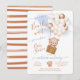 Moderne et mignon ours en peluche dans le panier avec des ballons à air chaud pour les invitations de Baby Shower. Superbe palette de couleurs boho neutres pour un bébé garçon ou fille à venir. Terre cuite, marrons, bleu poussiéreux et blanc.