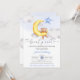 On peut attendre et être sur la Lune pour un bébé qui sera bientôt là. Adorable ours en peluche invitation à la douche thématique avec un joli ballon étoilé. Objets correspondants disponibles dans la boutique Jolie invitation.
