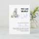 Aquarelle Ours Polaire maman avec petit ours et tous ours famille ensemble dans le côté arrière et la calligraphie phrase de script "We can Bearly Wait!" en couleurs blanches et bleues. Idées sur le thème du Boy Baby shower Party. Facile à personnaliser avec votre texte. Correspondance d'objets et d'autres invitations de baby showers d'hiver avec ce design que vous pouvez trouver à la collection Ours Polaire dans ma boutique PatternDigitPics. Si vous avez une demande spéciale, n'hésitez pas à m'envoyer un courriel à : t.dyomushkina@gmail.com
