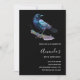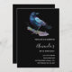 Invitation fête d'anniversaire avec un joli dessin aquarelle d'un corbeau. Le bleu foncé et les couleurs violettes vives accentuent la beauté de cet oiseau.