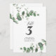 Beau design élégant et délicat de numéro de table de mariage avec feuillage de eucalyptus à petit budget. Collection rustique contemporaine et élégante dans les tendances actuelles, vert sauge, noir, bleu marine et blanc. Idéal pour les mariages de printemps, été, automne ou hiver.