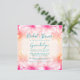 Belle grande fleur hawaïenne modèle d'invitation à la douche nuptiale. Carte carré avec script manuscrit gris foncé pour titre de parti et nom de la mariée. Ajoutez facilement des informations de fête, registre et RSVP sur un arrière - plan d'or rose et jaune avec de grandes fleurs frangipani / plumeria en haut et en bas. L'inverse est rose foncé et solide. D'autres tailles d'invitation sont disponibles, comme ronde, ou 5x7. Toutes les tailles ne fonctionneront pas pour ce design.