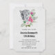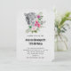 Invitation de fête d'anniversaire avec une belle illustration représentant un portrait léopard gris, noir et blanc. Ce bel animal est entouré d'un bouquet de fleurs tropicales. Élégant, exotique et joli.