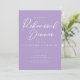 Cette belle invitation à dîner de répétition lilas présente une belle typographie blanche sur un arrière - plan mauve doux pour un mariage de printemps. Les invitations pastel de lavande sont un choix de couleur délicat pour un élégant jardin.