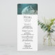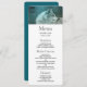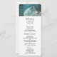 Carte menu mariage avec une photo d'un magnifique loup gris et velouté. Dans l'arrière - plan est une forêt sombre avec des arbres. Vibe mystique magique.