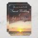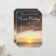 Avez-vous un beau mariage au coucher du soleil ? Alors vous cherchez probablement un beau faire-part de mariage d'impression de coucher de soleil! C'est un magnifique faire-part de mariage de coucher de soleil sur l'océan avec des lettres blanches. Simple et droit au but.