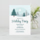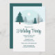 Un magnifique paysage hivernal avec pins verts turquoises et terrain couvert de neige sur une invitation personnalisée de fête de vacances. Customisez ces invitations de fête de Noël avec vos propres détails sous l'élégant script cursif.