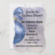 Elégante invitation de carte de Noël avec un beau ornement bleu suspendu à un ruban de soie. Inclut tout le texte nécessaire, y compris : le nom de l'événement, le nom et l'adresse des hôtes, la date et l'heure, le moment où les snacks et le dîner seront servis, l'adresse, les coordonnées RSVP. TOUT le texte peut être customisé selon vos goûts.