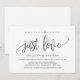 Belle Élégante Moderne Noir Rien de Fantaisie Juste de l'Amour écriture, Mariage Fugue Annonce, Carte d'invitation. Ceci est parfait pour votre réception de mariage et fête de célébration après-mariage. Ajoutez vos détails dans la police / lettrage correspondant.