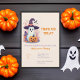 Trick ou traitement ? Adorable joli design de fête d'Halloween avec un adorable fantôme avec un casquette sorcier et un citrouille sculpté. Modifiez cette invitation pour votre propre événement amusant, vous pouvez aussi télécharger l'invitation et le texte à vos amis et votre famille.