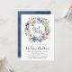 Nos magnifiques invitations de remise de diplômes Blooming Beauty présentent "Grad Party" dans un script de calligraphie moderne entouré d'une couronne florale d'anciennes fleurs d'aquarelle blanche et bleue indigo avec des feuilles verts muets. L'envers de l'invitation est composé d'un arrière - plan d'aquarelle bleu profond. Personnalisez les invitations à la fête de graduation florale en ajoutant le nom du diplômé et les détails de la fête.