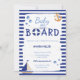 Déposez-vous pour une fête mémorable avec ce "Baby on Board" ! Baby shower bleu marin Invitation." Cette charmante invitation présente un thème nautique en bleu marin classique, parfait pour annoncer l'arrivée prochaine d'un bébé garçon. Décoré d'éléments marins mignons comme des ancres, des bateaux et des rayures, c'est une façon délicieuse pour les amis et la famille invitations de partager la joie de cette occasion spéciale. Personnalisez les détails et préparez-vous à accueillir votre petit marin dans le style!