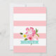 Cette invitation vibrante de fête prénatale sur le thème d'un luau tropical présente un script gras "Aloha, Bébé" aux côtés d'un ananas jaune vif sur un fond aqua frais. Une bannière sarcelle affiche le texte "Baby Shower Luau" pour une atmosphère festive de fête hawaïenne. De luxuriants hibiscus en fleurs, des plumerias et des feuilles de palmier encadrent le design en rose chaud, jaune et blanc. Un fond rayé rose et blanc coordonné complète le design recto-verso. Tout le texte est entièrement personnalisable pour votre célébration.