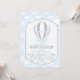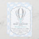 Ballon d'air chaud en bleu bébé, blanc et argent parties scintillant-look accent avec bébé bleu et blanc pois-point arrière - plan conception de carte d'invitation baby shower pour un bébé garçon.