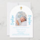 Invitation Bébé blanc bleu photo arch script garçon Baptême