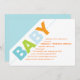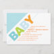 Graphique et contemporain, ce design présente le "BABY", épelé dans des motifs amusants de rayures et de pois dans un décor bleu, vert et orange. Parfait quand le bébé est un garçon. Chaque ligne customise les détails de votre célébration et fait une déclaration propre et moderne.