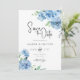 Mariage d'aquarelle florale enregistrer la carte de date. Elégant floral enregistrer la carte de date avec de belles fleurs d'aquarelle peintes à la main et de la verdure en bleu bébé clair avec élégant script de calligraphie et arrière - plan bleu clair au fond de l'invitation. Mariage floral moderne enregistrer la carte de date. Vous pouvez personnaliser le libellé, le style de police, la couleur et la taille devant et derrière la carte. N'hésitez pas à me contacter pour les articles correspondants.