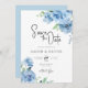 Invitation Bébé Bleu Bleu Feuilles Floral Enregistrer La Date