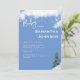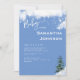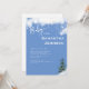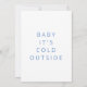 Invitation baby shower. Informations sur l'avant et l'arrière. Neige. Les arbres d'hiver. Bébé, il fait froid dehors. Arrière - plan blanc et bleu. Texte blanc.