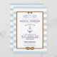 L'invitation à la douche de baby shower nautique "Ahoy, It's A Boy" de Nautical Boutique Co. comprend une bordure de corde à noeud infinité réaliste et arrière - plan d'une finition d'aquarelle moderne avec des rayures bleu bébé et blanc marine. La typographie comprend un bloc classique de lettres rappelant les styles nautiques jumelés à la typographie à lettres modernes. Il allie style traditionnel et classique et éléments design modernes. Une ancre d'aquarelle assortie complète cette invitation nautique baby shower. #Nautical #BabyShower #HerABoy #BabyShower