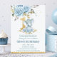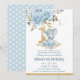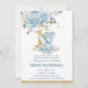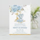 Invitation Bébé bleu floral mignon Eléphant Un 1er anniversai