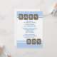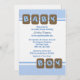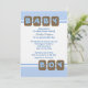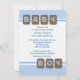 Blue Baby Boy est une carte d'invitation en Baby shower bleu avec des lettres bleues dansantes et décalées sur des carrés ronds bruns, idéalement pour les futurs bébés garçons. © Matin 6