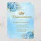 Baby Blue Gold Floral Tiara Quinceanera Invitation