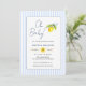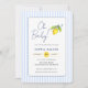 Mon bébé ! De belles rayures bleues et blanches modernes prêtent une invitation au baby shower à thème des citrons méditerranéens. Parfait pour s'amuser baby shower gai.