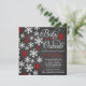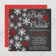 Adorable invitation à la douche d'enfant à thème d'hiver. Doté d'une police de script avec l'expression "Baby It's Cold Outside", avec des flocons de neige rouges et blancs sur un arrière - plan de tableau noir. Moderne et mignon pour un baby shower.