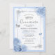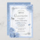 Invitation Bébé clair argent Bleu Roses élégant Quinceanera
