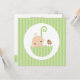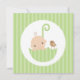 Des invitations élégantes à la douche bébé avec une illustration de bébé mignon et un oiseau dans un parapluie sur un arrière - plan rayé. Art © Cocoa Studio