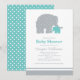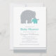 Cette douce invitation à une baby shower présente une silhouette d'éléphant gris mère adorable avec son précieux bébé éléphant bleu sarcelle, sur un fond doux à pois. Le charmant design de la mère et du bébé éléphant est un choix frais et neutre pour toute célébration de baby shower. Tout le texte est entièrement personnalisable pour votre événement.