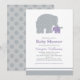 Invitation Bébé Éléphant Mère Violet Gris Baby Shower