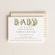 BÉBÉ En Fleur, fleurs d'aquarelle et verdure délicate ornent des lettres de caractères gras, invitation baby shower. Le dos de la carte est muni d'un motif à bande d'aquarelle neutre.