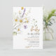 Cette invitation tendance Baby Boom présente des fleurs sauvages violettes à l'aquarelle, de la camomille rustique, des feuilles de verdure et des brindilles.
