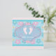 Invitation adorable pour une baby shower de bébé fille avec des pieds de bébé roses et des fleurs bleues sarcelle et rubans
