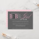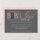 Invitation Baby shower avec les mots "petite fille" en rose, gris et noir avec les détails de la fête ci-dessous.