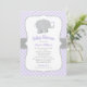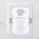 Invitation Bébé Fille Éléphant Violet Moderne Célébration de