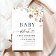 Fêtez l'arrivée d'un nouveau lot de joie avec un beau baby shower thématique Baby in Bloom. Rejoignez-nous pour un après-midi rempli d'amour et de bonheur alors que nous honorons les futurs parents. L'invitation comporte une étonnante terre cuite - texte orange brûlé, accentué par un éventail de fleurs sauvages dynamiques.